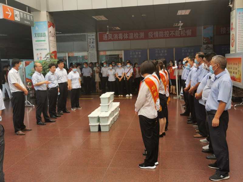 活動(dòng)現(xiàn)場(chǎng),集團(tuán)機(jī)關(guān)黨支部黨員為劉靜服務(wù)組全體成員和部分一線駕駛員送上夏日清涼用品。同時(shí),集團(tuán)機(jī)關(guān)黨支部與宿汽集團(tuán)黨總支開展文明勸導(dǎo)服務(wù),為旅客提供出行咨詢、協(xié)助旅客使用智能一體取票機(jī)、搬運(yùn)大件行李、引導(dǎo)旅客購(gòu)票、乘車、安檢等服務(wù),充分發(fā)揮出黨員干部的先鋒模范帶頭作用。