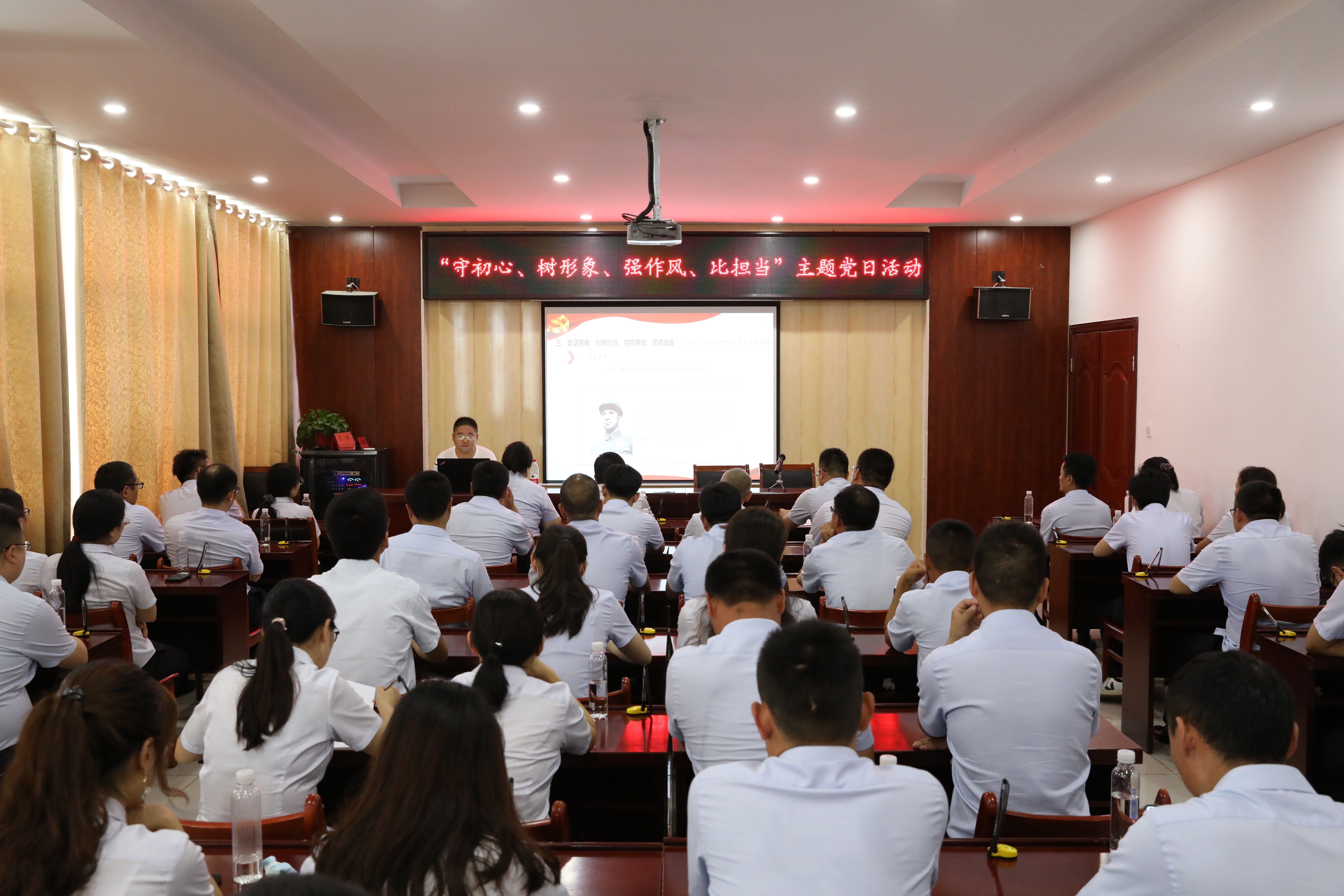 聆聽一堂專題黨課:支部書記以“不忘初心,牢記使命 做新時代合格共產(chǎn)黨員”為主題,圍繞“新時代新要求”、“做不忘初心、牢記使命的合格共產(chǎn)黨員”等五個方面為全體黨員上了一堂生動的專題黨課。