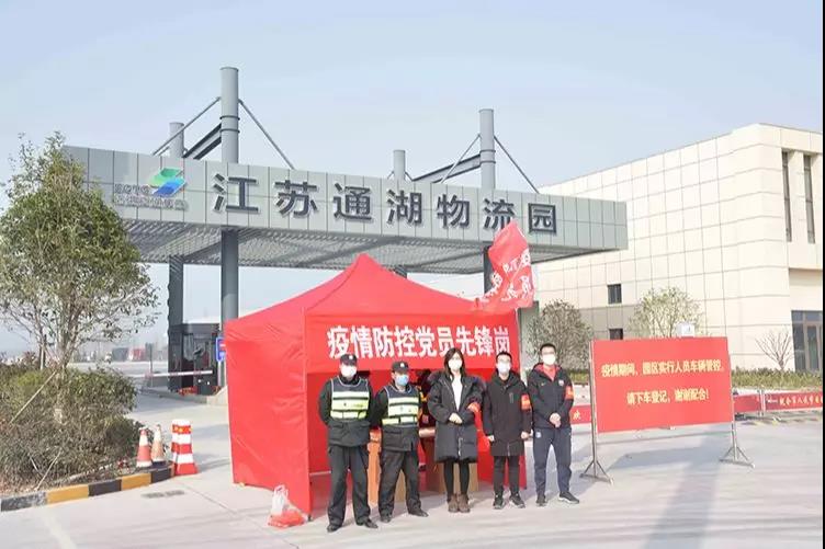 在抗擊新冠肺炎疫情中,江蘇通湖物流園有限公司黨員干部挺身而出、沖鋒在前,讓黨旗在疫情防控一線高高飄揚。