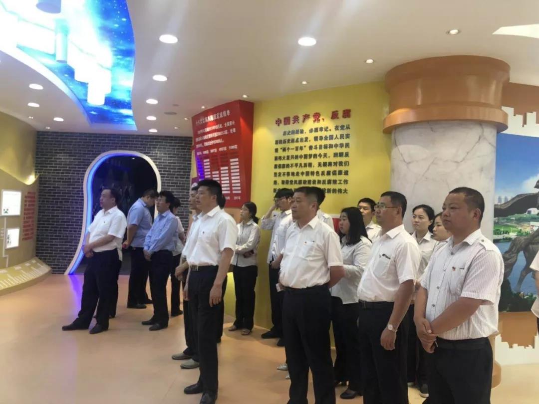 在廉政教育中心,全體人員在講解員的帶領(lǐng)下,依次參觀“時(shí)代之風(fēng)”、“激濁之行”、“信仰之力”、“騰飛之路”展廳,認(rèn)真參觀了廉政教育展覽,系統(tǒng)學(xué)習(xí)了中國(guó)反腐倡廉的歷史進(jìn)程,隨后還觀看了身邊貪腐干部的犯罪警示片,心靈上受到強(qiáng)烈震撼。一塊塊展板、一幕幕鏡頭、一聲聲懺悔、一句句告誡,給大家上了一堂生動(dòng)的廉政警示教育課, “舉黨旗 立廉本”、“肅法紀(jì) 振黨威”、“承廉脈 明鏡鑒”等標(biāo)語(yǔ)鮮明醒目,用無(wú)聲的力量時(shí)刻提醒著大家要不忘初心、牢記使命,永葆清正廉潔本色。