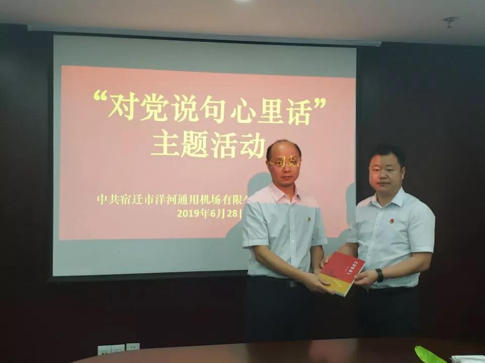 在中國共產(chǎn)黨成立98周年之際,為深入貫徹落實習(xí)近平新時代中國特色社會主義思想和黨的十九大精神,6月28日,宿遷市洋河通用機(jī)場有限公司黨支部開展“對黨說句心里話”主題活動,激勵和鼓舞全體黨員“不忘初心、牢記使命”,立足本職崗位,為宿遷交通運輸事業(yè)發(fā)展貢獻(xiàn)力量。