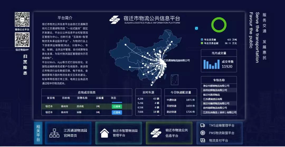 宿遷市物流信息公共平臺(tái)于2018年9月開始設(shè)計(jì)開發(fā)。