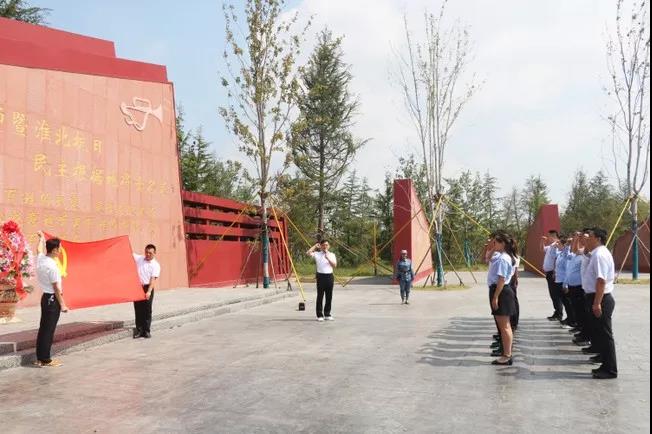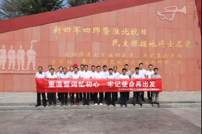 伴隨著嘹亮的軍歌,大家踏上了這片被譽(yù)為“蘇皖紅土地,淮北小延安”的紅色土地。在新四軍四師暨淮北抗日民主根據(jù)地將士名錄墻前,全體黨員列隊肅立,鞠躬默哀,向革命先輩敬獻(xiàn)花籃。隨后,黨員同志們面對黨旗,重溫入黨誓詞,用錚錚誓言詮釋自己不忘初心,牢記使命的堅定信念。