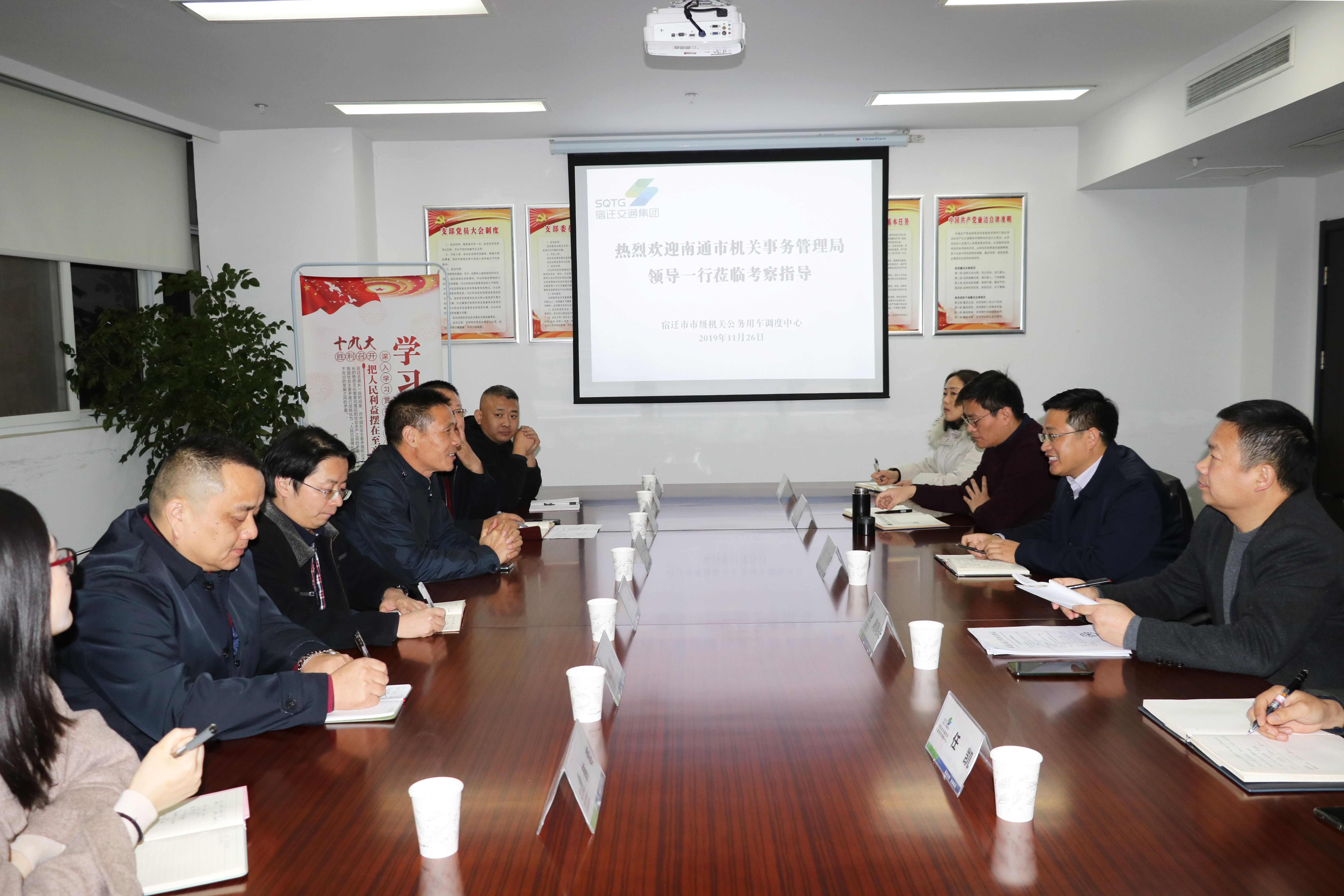 11月26日下午,南通市機(jī)關(guān)事務(wù)管理局黨組成員王炳發(fā)一行到市公車調(diào)度中心考察交流,市機(jī)關(guān)事務(wù)管理局副局長(zhǎng)丁健倫、公車調(diào)度中心主任程秋稚等相關(guān)同志參與座談交流。