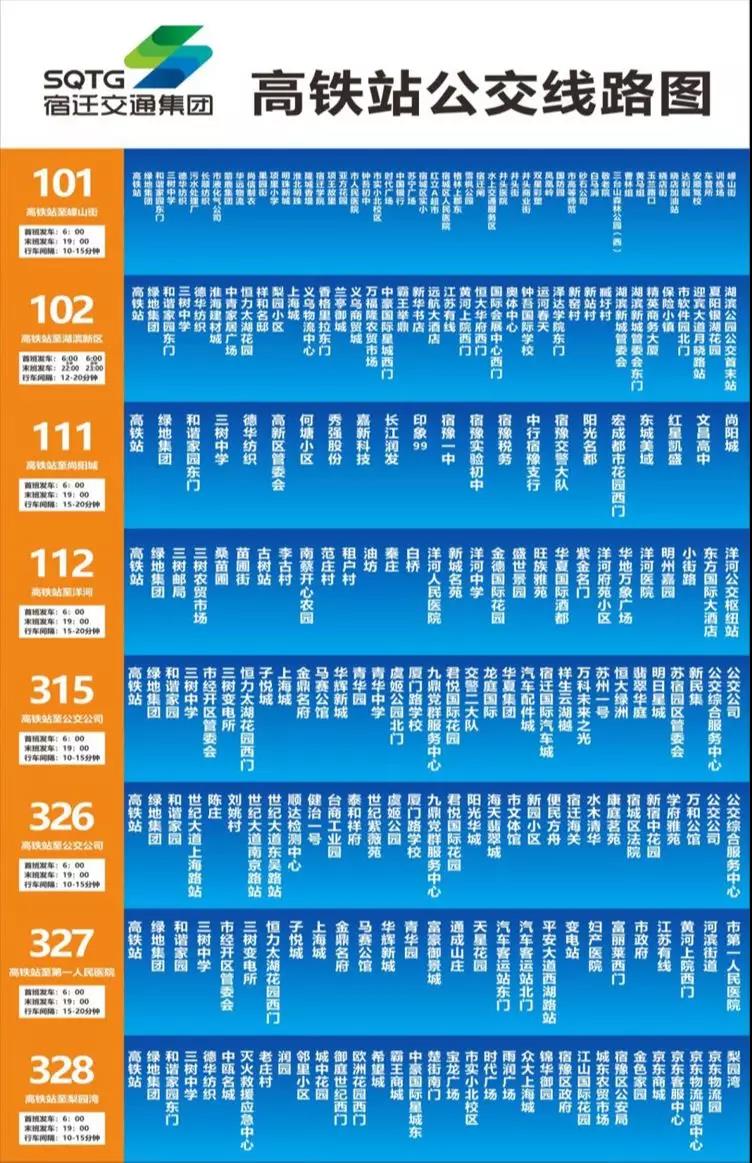 公交公司根據(jù)徐宿淮鹽鐵路宿遷站發(fā)車時間、密度、班次,科學規(guī)劃公交行車計劃,合理設置途經(jīng)站點,設計制作風格化線路走向示意圖,同時完善公交線網(wǎng)布局,新辟、優(yōu)化101路、102路等8條公交線路,直達宿遷站換乘中心。待鐵路開通后,將形成集高鐵、公交、長途客運、出租車多種交通方式無縫對接和零距離換乘。