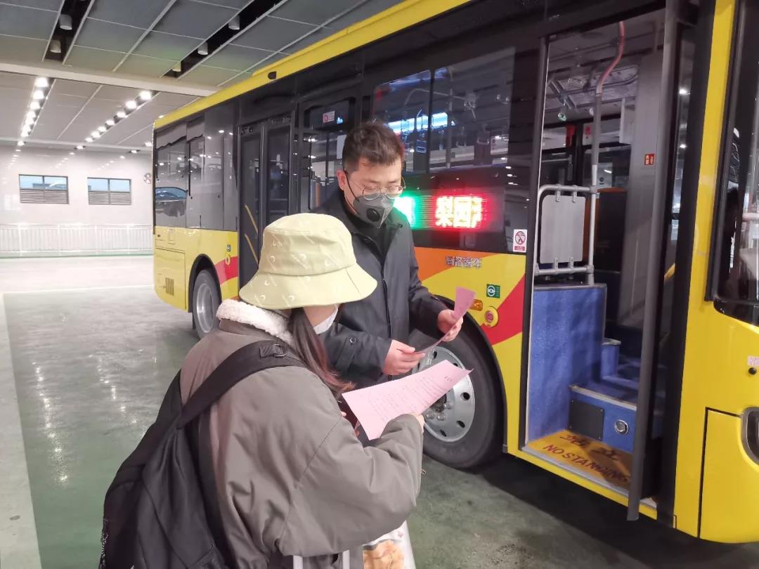 高鐵宿遷站公交樞紐站站長劉宇介紹,目前該站點(diǎn)全面更新紅外線體溫測量儀,嚴(yán)格對上下班司機(jī)進(jìn)行體溫檢測,并做好記錄臺賬,如發(fā)現(xiàn)司機(jī)有體溫異常的情況,將立即停止該司機(jī)的營運(yùn)任務(wù)并通知其快速到鄰近醫(yī)院就診,并上報(bào)公司相關(guān)部門登記。對辦公區(qū)域及所有值班車輛進(jìn)行每日全方面消毒,在辦公室放置防護(hù)口罩、消毒水等疫情防護(hù)用品。同時(shí),要求所有值班人員均須戴防護(hù)口罩,每日定時(shí)測量體溫,確保員工安全上崗。還要求公交車駕駛員禁止未帶口罩乘客上車。