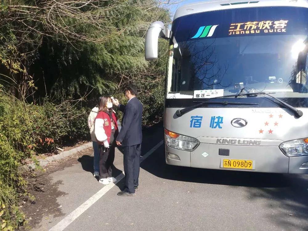 2月17日,在得到上級(jí)主管部門的許可后,宿汽集團(tuán)安排車輛前往南京。經(jīng)體溫檢測(cè)后,宿遷技師學(xué)院的101名學(xué)生分別乘坐4輛50座大巴,順利返回宿遷。