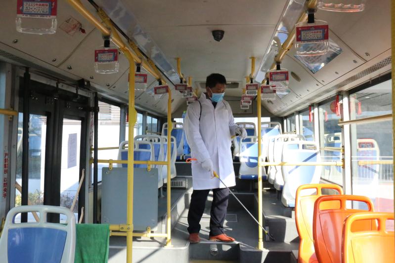 施俊永從早忙到晚,每天在完成自己的營運(yùn)任務(wù)后就換上隔離服,帶上防護(hù)帽,對每輛進(jìn)場的公交車輛逐一擦拭扶手、欄桿、座椅,噴灑消毒水,擦拭地板,確保車輛消毒不留死角。每當(dāng)劉玉榮營運(yùn)結(jié)束回到站內(nèi),看著丈夫一遍遍擦拭扶手、噴灑地板的身影就感到心疼;而施俊永也擔(dān)心妻子的自身防護(hù),每次在為劉玉榮的車輛消毒時,總要幫她整理一下口罩,反復(fù)叮囑幾句,小小的公交車廂成了夫妻兩人傳遞愛與溫暖的紐帶。他們就這樣默默堅(jiān)守著自己的工作崗位,迎來送往,無私奉獻(xiàn),奮戰(zhàn)在服務(wù)乘客和抗擊疫情的公交第一線。