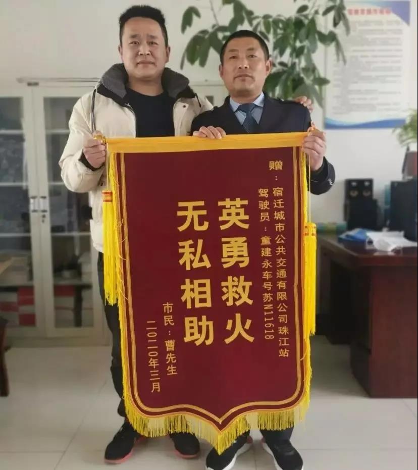 3月11日,市民曹先生來到宿豫區(qū)珠江路調(diào)度站,向106路蘇N11618公交駕駛員童建永贈(zèng)送錦旗,感謝他在危急時(shí)刻挺身而出。