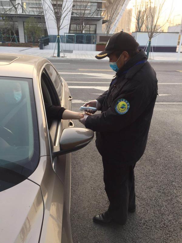 每天早上上班前,趙愛軍自己測(cè)量體溫,然后戴好口罩、手套;工作期間,發(fā)現(xiàn)有人員聚集情況,他及時(shí)過去勸導(dǎo)疏散;下班后,他細(xì)心地對(duì)停車場(chǎng)進(jìn)行消毒。