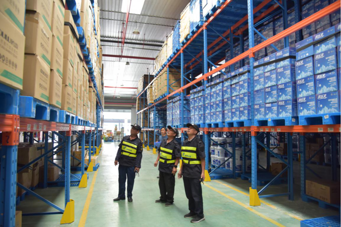 園區(qū)工作人員排查倉儲區(qū)安全隱患