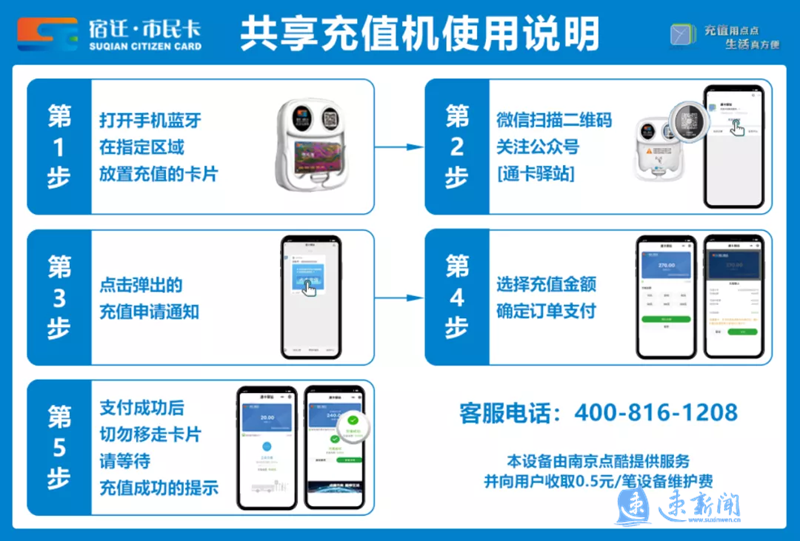 7月9日,記者從宿遷市民卡公司了解到,為提倡綠色出行,方便市民乘坐公交,進(jìn)一步落實(shí)交通部及省廳有關(guān)“一卡通全國(guó)通用和便攜應(yīng)用”的工作要求,解決全國(guó)一卡通實(shí)體卡線下充值繁瑣等問(wèn)題,宿遷市民卡公司聯(lián)合公交公司、南京點(diǎn)酷公司共同推出宿遷市民卡共享充值機(jī)項(xiàng)目,本地持卡市民可在公交站點(diǎn)通過(guò)掃描設(shè)備二維碼對(duì)實(shí)體卡片進(jìn)行余額查詢(xún)、自助充值等服務(wù),免去用戶(hù)到網(wǎng)點(diǎn)充值的麻煩,為廣大市民出行提供方便。