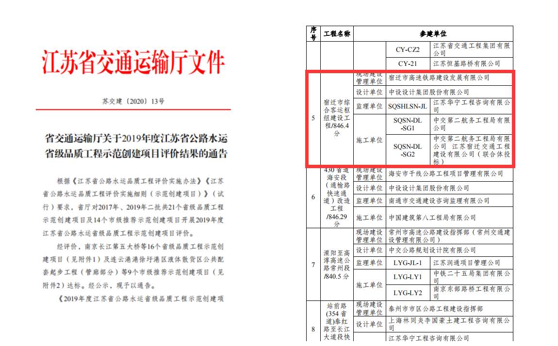 此次江蘇省有9個(gè)市級(jí)推薦示范創(chuàng)建項(xiàng)目達(dá)標(biāo),由市交通集團(tuán)承建的宿遷市綜合客運(yùn)樞紐建設(shè)工程以846.4分榮獲第五名。
