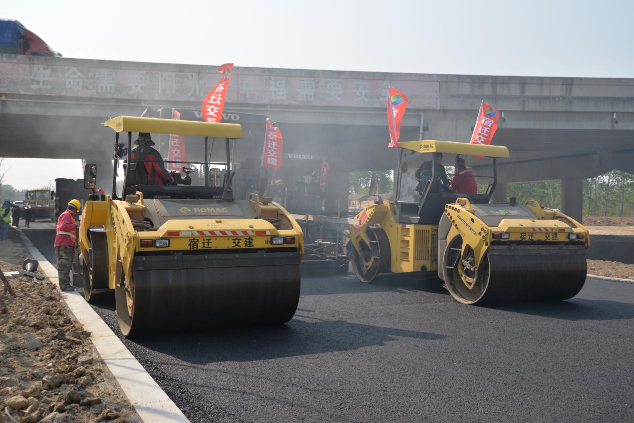 圖為正在進行瀝青攤鋪的宿豫順興線EPC項目