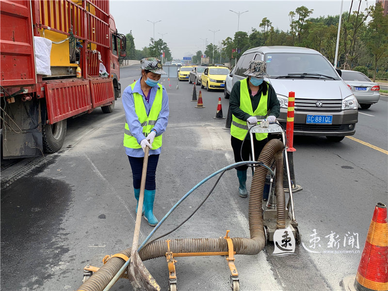 “我們是老雙莊人,這條路就在我們家門口,我們盡快完成建設(shè)任務(wù),道路通車了就能方便很多人出行。”10月2日上午7時許,家住宿城區(qū)雙莊街道的單金玲、單翠玲姐妹早早來到西湖路(世紀大道至發(fā)展大道段)提升改造工程施工現(xiàn)場進行舊標線清除工作。