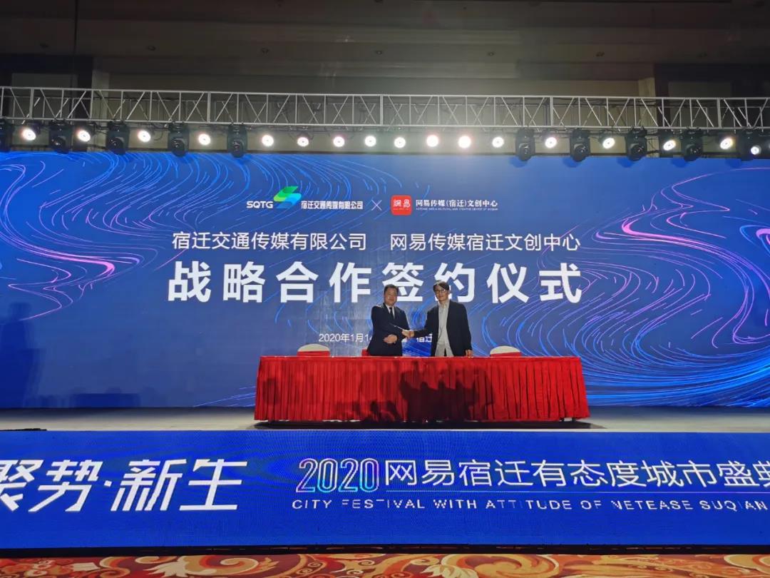 1月14日下午,宿遷交通傳媒有限公司與網(wǎng)易傳媒(宿遷)文創(chuàng)中心在宿遷運(yùn)河金陵酒店舉行戰(zhàn)略合作簽約儀式。