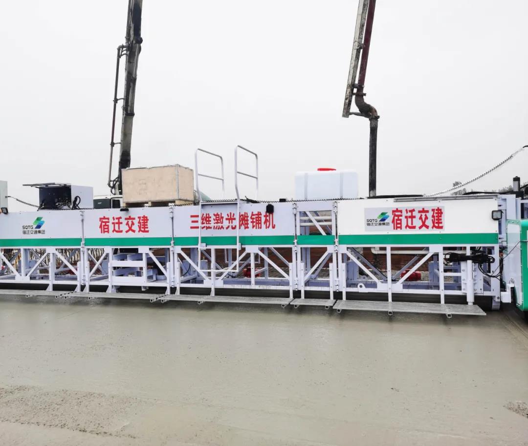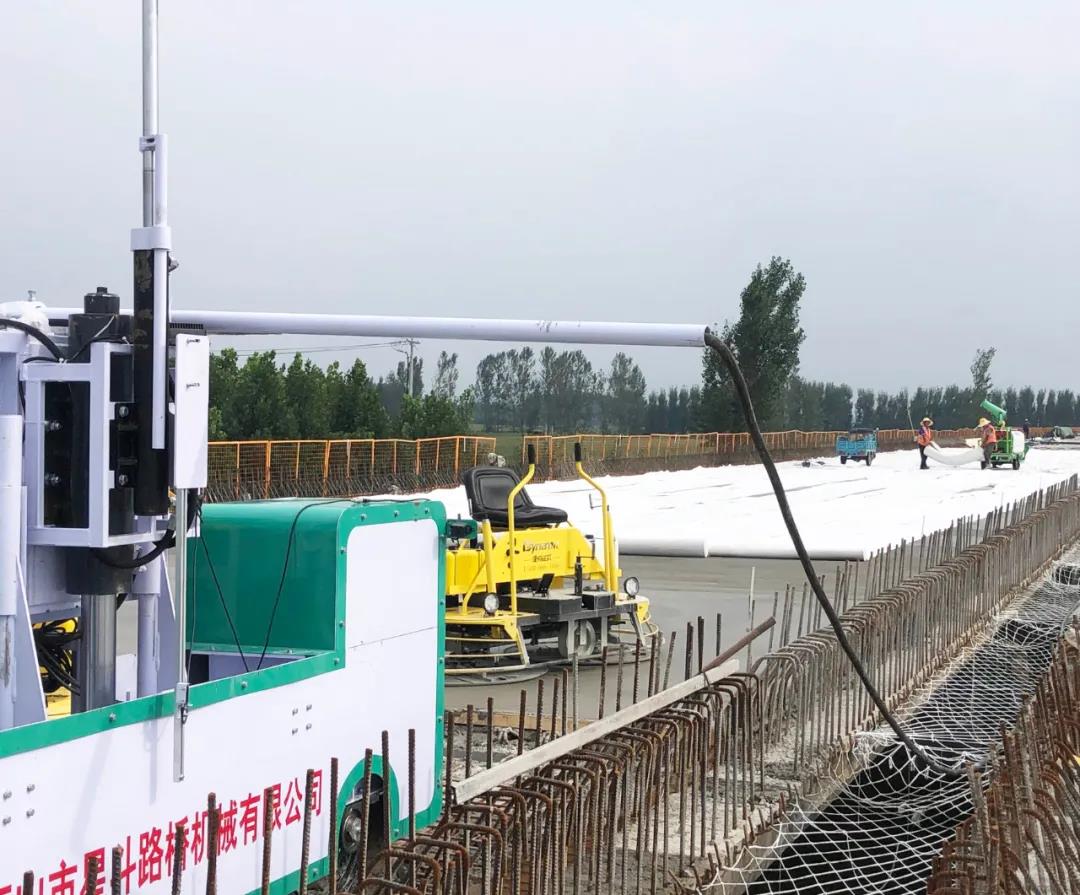 為保障首件澆筑順利進(jìn)行,該項(xiàng)目部不斷完善施工方案,科學(xué)調(diào)配資源,先后進(jìn)行了梁面沖洗、梁面噴灑防水劑、測(cè)量放線、鋼筋網(wǎng)片鋪設(shè)、護(hù)欄覆蓋保護(hù)、鋪設(shè)軌道及標(biāo)高參照線等前期準(zhǔn)備工作;以創(chuàng)優(yōu)質(zhì)工程為目標(biāo),積極推行機(jī)械化、智能性施工,充分發(fā)揮科技引領(lǐng)和技術(shù)創(chuàng)新優(yōu)勢(shì),在橋面混凝土鋪裝施工中,橋面鋪裝引進(jìn)首臺(tái)“三維激光攤鋪機(jī)”進(jìn)行作業(yè),降低了施工成本,提高了橋面鋪裝的精度,有效地把控橋面鋪裝的質(zhì)量。