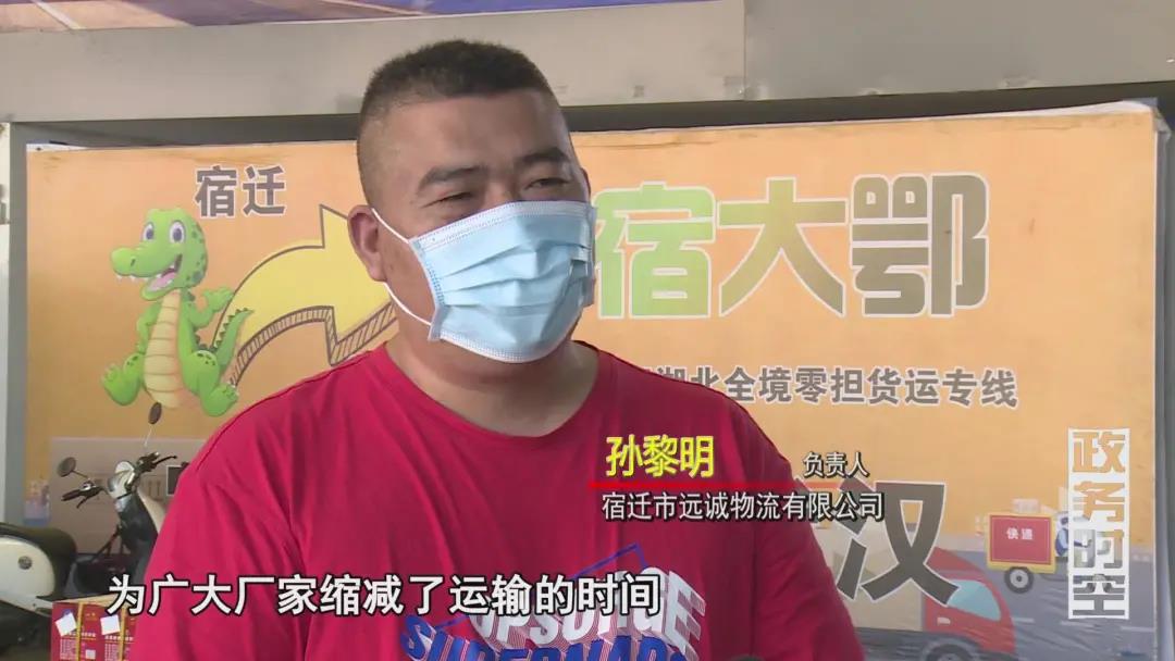 宿遷做專線的很少,可以說湖北貨在我沒做(專線)之前,都是通過臨沂、徐州去周轉(zhuǎn)的,那時候貨物經(jīng)常有破損,而且時間也特別慢,現(xiàn)在有這個物流園之后,我到這邊來做湖北專線,從宿遷直接發(fā)車到武漢,以前可能要五六天,現(xiàn)在我們今天發(fā)車,第二天就能到武漢了,為廣大廠家縮減了運輸?shù)臅r間。