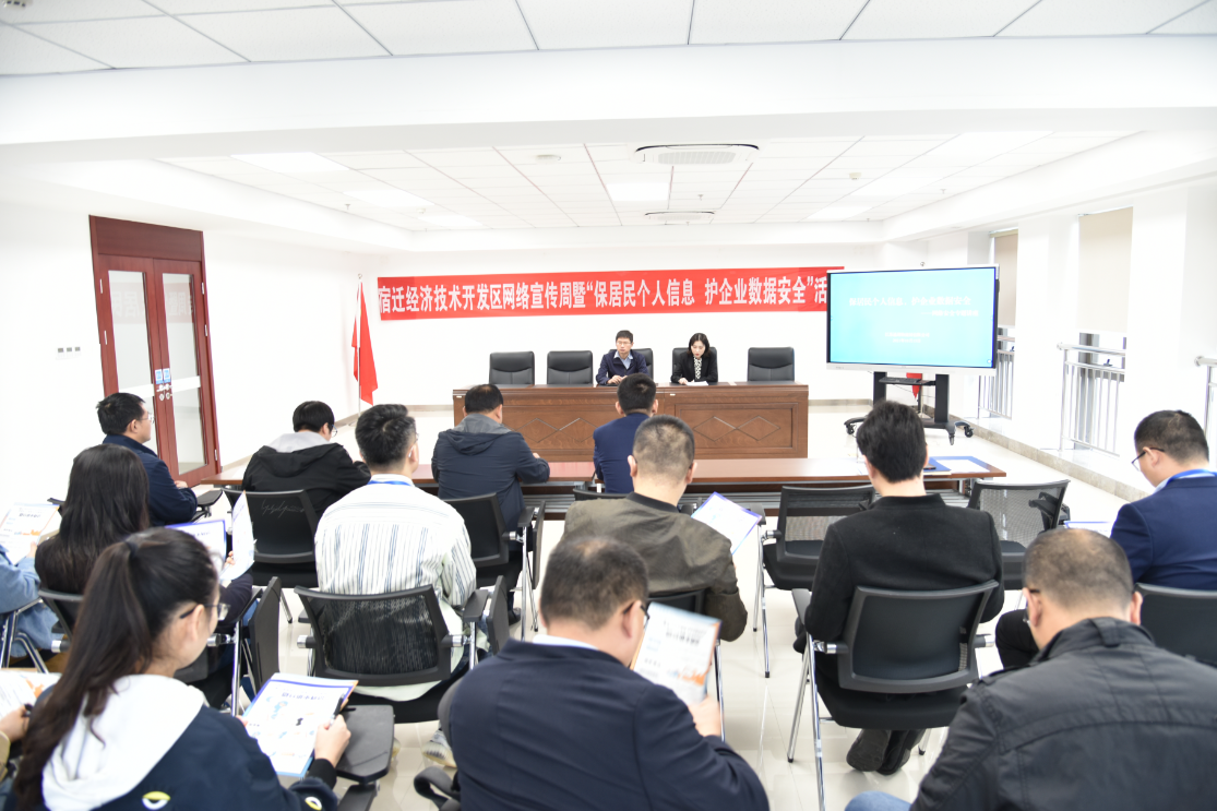 在宣傳周活動中,在園區(qū)LED大屏等載體上投放網(wǎng)絡(luò)安全宣傳圖,提升園區(qū)職工及租戶的網(wǎng)絡(luò)安全防護意識;參加宿遷經(jīng)濟技術(shù)開發(fā)區(qū)舉辦的“《小學(xué)生安全漫畫——網(wǎng)絡(luò)安全》讀本捐贈儀式”,為該區(qū)小學(xué)生送上了生動的網(wǎng)絡(luò)安全讀物;邀請宿遷經(jīng)濟技術(shù)開發(fā)區(qū)組織宣傳部領(lǐng)導(dǎo)為園區(qū)職工及租戶代表上了“保居民個人信息,護企業(yè)數(shù)據(jù)安全” 網(wǎng)絡(luò)安全專題講座,對數(shù)據(jù)安全問題案例、企業(yè)數(shù)據(jù)安全管理現(xiàn)狀、企業(yè)數(shù)據(jù)泄露途徑、企業(yè)數(shù)據(jù)泄露防范措施等方面進行了專題講解,并為當前園區(qū)網(wǎng)絡(luò)貨運業(yè)務(wù)開展及信息化、智慧化園區(qū)建設(shè)提供了新知識、新想法、新思路。