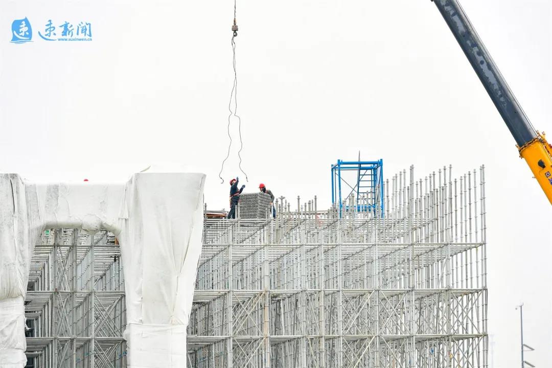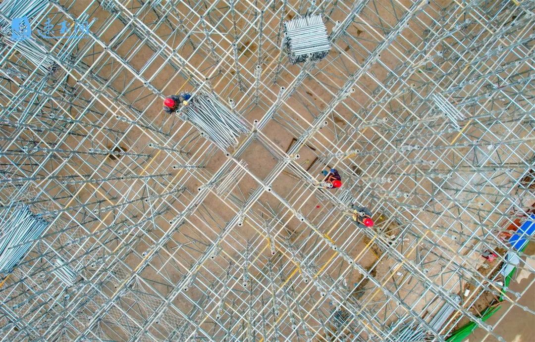 1月27日,工人在北京路快速化改造工程一標(biāo)段進行盤扣式腳手架施工。目前,由市交通集團負責(zé)建設(shè)的北京路快速化改造工程施工進展順利,各項工程有序推進。