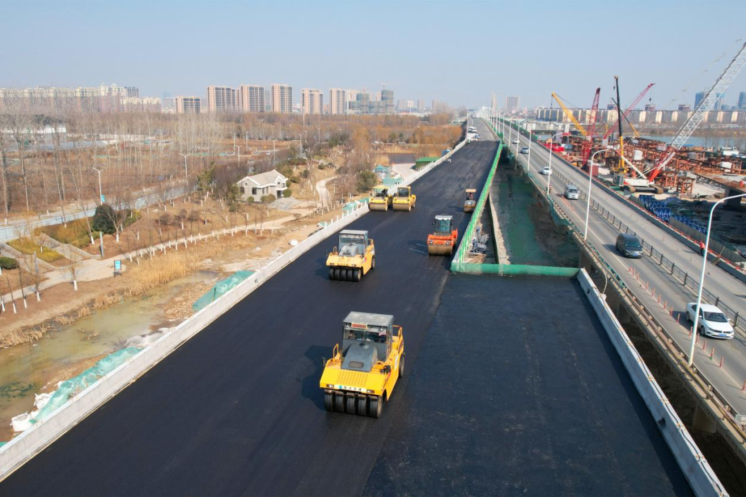 【高鐵公司】項(xiàng)目建設(shè)再提速,北京路快速化改造工程運(yùn)河三號(hào)橋引橋順利完成瀝青攤鋪