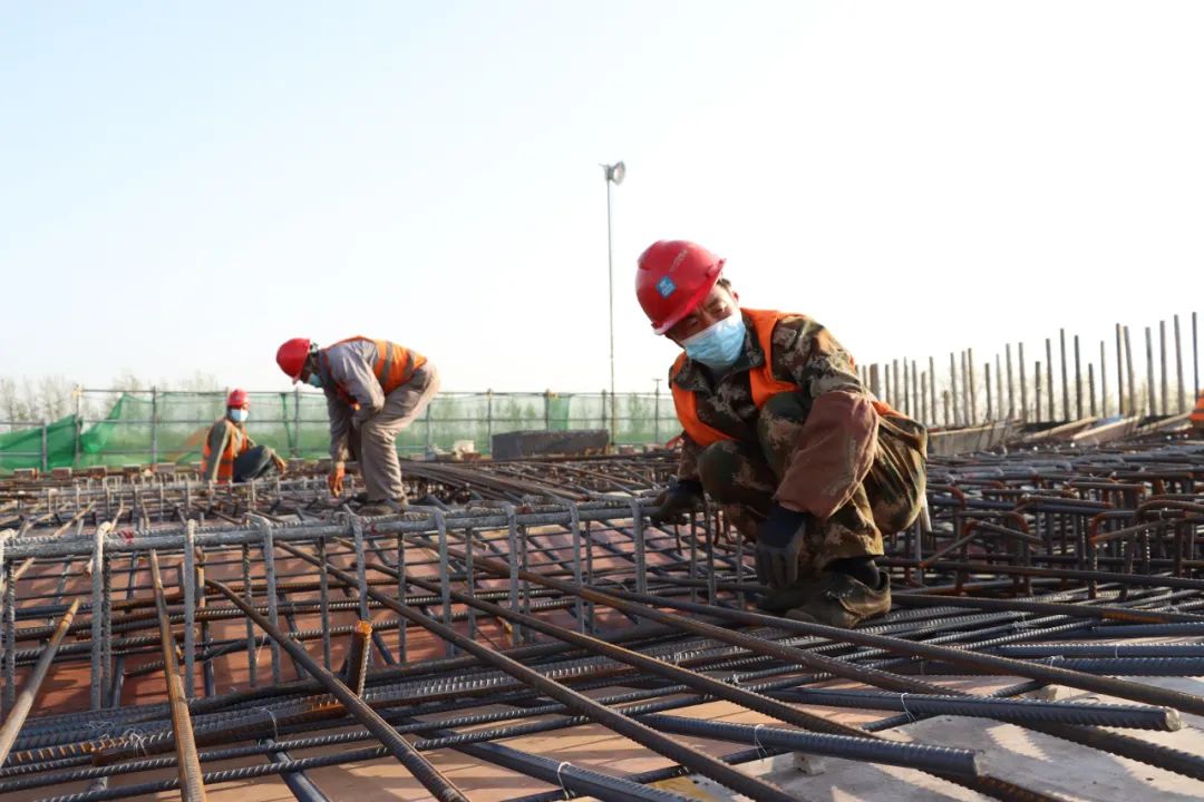 4月8日,宿遷市北京路快速化改造工程現(xiàn)場(chǎng)施工人員正在有條不紊地綁扎鋼筋、焊接、沖洗、安裝……復(fù)工生產(chǎn)平穩(wěn)有序推進(jìn)。