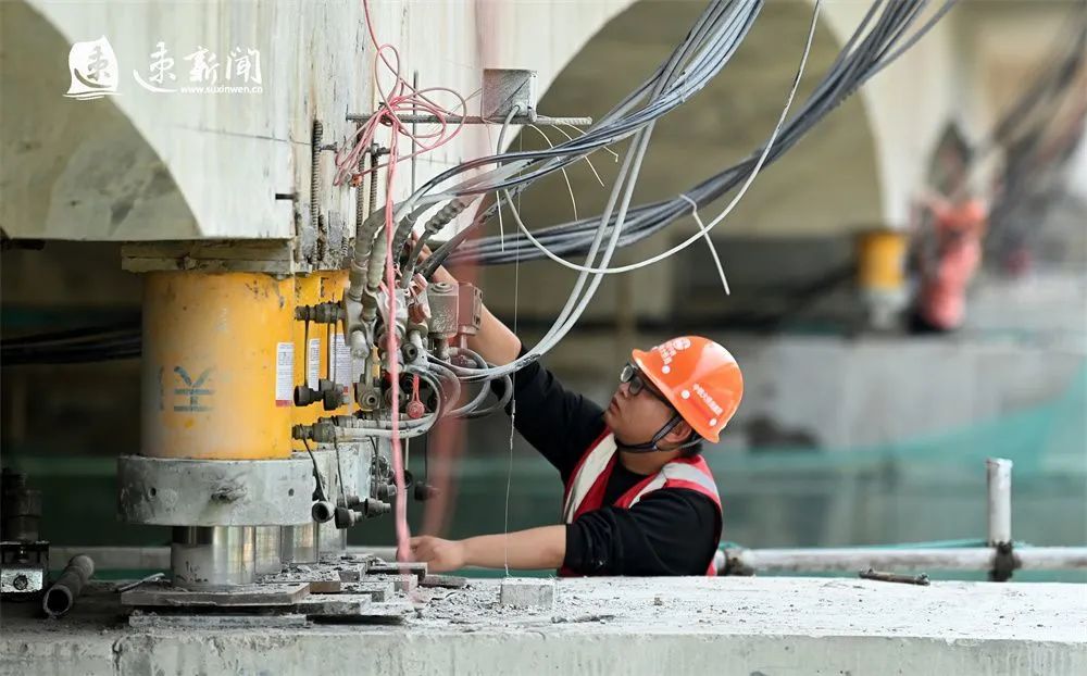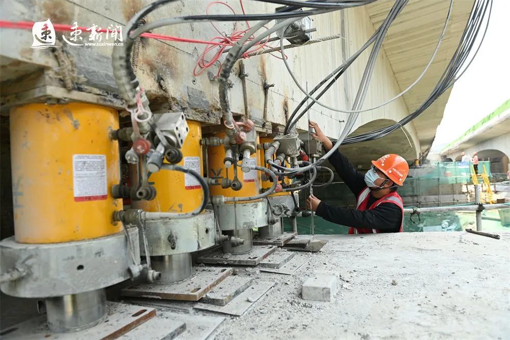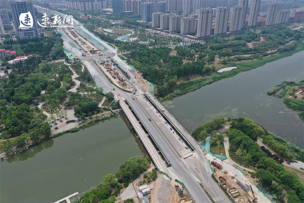 5月26日,在宿遷市區(qū)迎賓大道二期工程古黃河橋施工現(xiàn)場,該工程施工團隊正在對橋面進行平移,其他路段也遍布機械、陣陣轟鳴,施工現(xiàn)場熱火朝天,以奔跑的姿態(tài)推動項目建設跑出“加速度”。