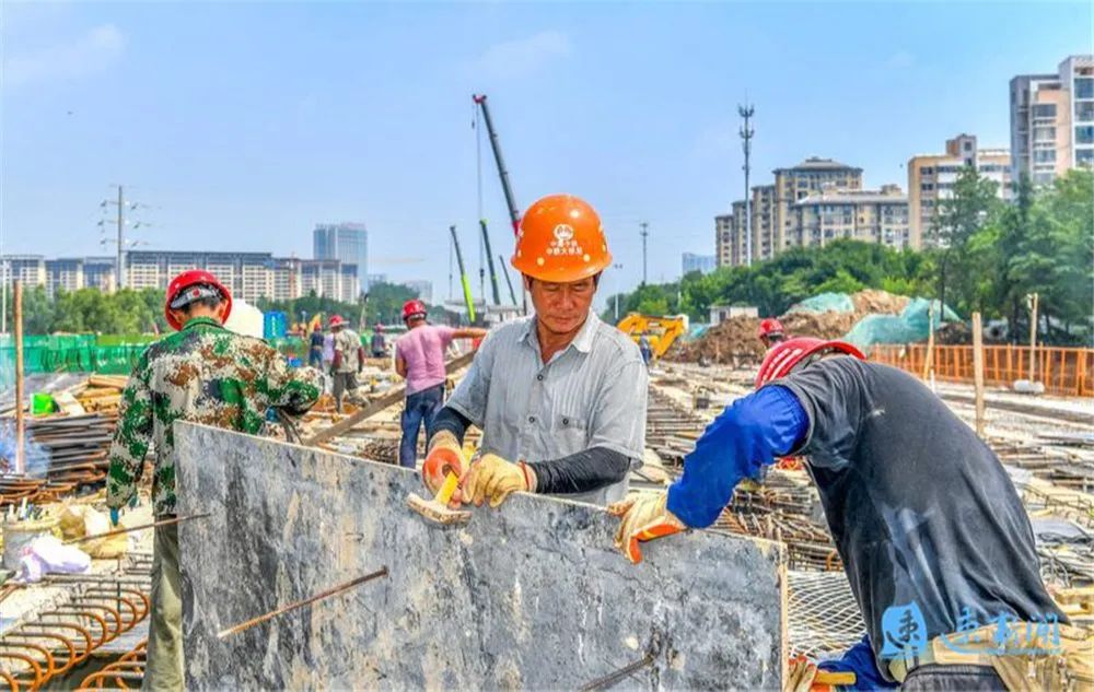 7月13日,宿遷市最高氣溫達36攝氏度,在宿遷市迎賓大道二期快速化改造工程項目施工現(xiàn)場,廣大建設者冒著高溫,奮戰(zhàn)一線,鉚足干勁拼搶工期。