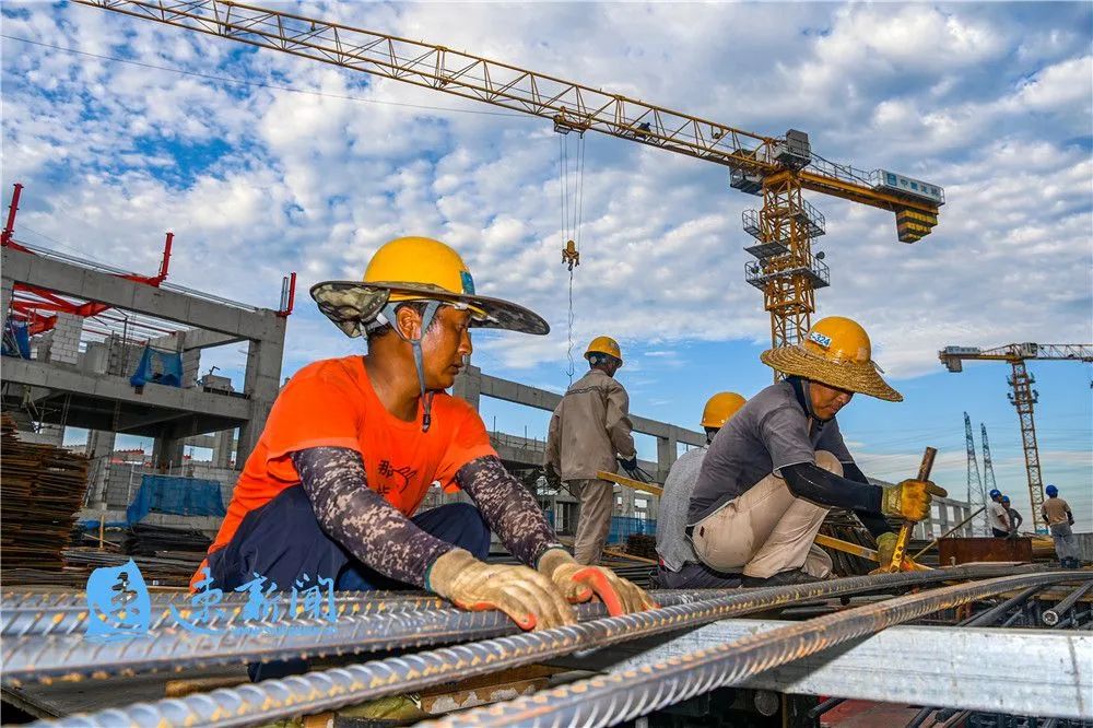 8月12日清晨,在江蘇通湖物流園二期工程施工現(xiàn)場,建設(shè)工人正在有序施工。