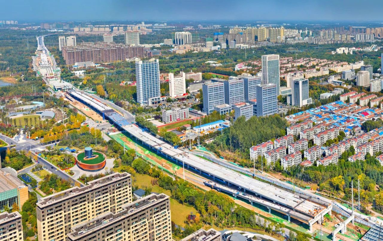 7月27日,迎賓大道二期快速化改造工程第一個(gè)鋼混組合梁成功吊裝;