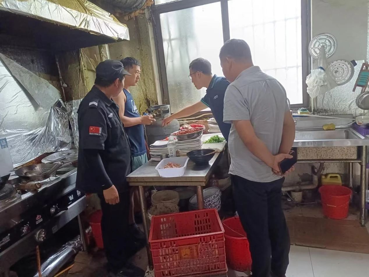 檢查組一行重點(diǎn)檢查在用氣瓶使用年限是否在有效檢驗(yàn)期內(nèi);減壓器、減壓閥、連接軟管是否存在明顯的老化或者接口松動(dòng);液化石油氣是否合格;智能報(bào)警器是否連接電源處于正常工作狀態(tài)。對(duì)排查發(fā)現(xiàn)備用氣罐過(guò)多、軟管超長(zhǎng)、氣罐離火源過(guò)近、智能報(bào)警器損壞等隱患進(jìn)行登記,責(zé)令立即關(guān)閥處理,待隱患整改完成后恢復(fù)使用。