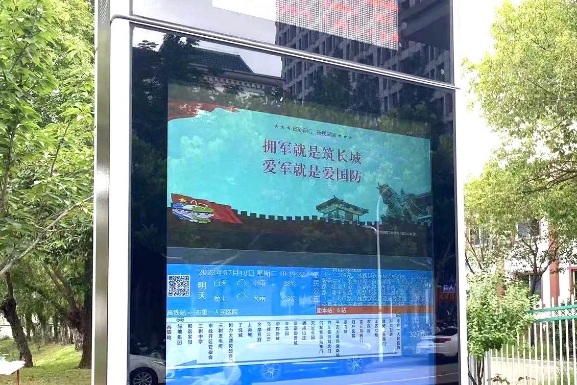 據(jù)了解,公司累計(jì)在全市165座電子公交站牌上輪播雙擁宣傳畫面,為主要路段候車亭安裝100余幅公益廣告畫面,在主要線路300余輛公交車的車載電視上循環(huán)播放雙擁宣傳視頻,并在車廂顯著位置張貼“現(xiàn)役軍人及退役軍人憑證免費(fèi)乘車”等溫馨提示標(biāo)語,讓十米公交成為傳承崇軍尊軍精神、弘揚(yáng)擁軍敬軍文化的移動宣傳陣地,雙擁的氛圍更加濃厚,吸引廣大市民主動了解雙擁工作內(nèi)涵,積極參與到雙擁工作中來。
