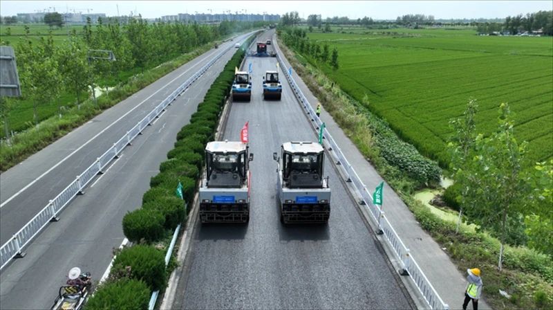 9月14日,在宿遷市2023年普通國省道養(yǎng)護專項工程1標段344省道施工現(xiàn)場,瀝青路面攤鋪壓實工作有序開展,在駕駛室無人駕駛的情況下,1臺無人攤鋪機和5臺無人壓路機組成的無人攤鋪、碾壓智能機群在進行全自動化協(xié)同聯(lián)合作業(yè),完成瀝青路面下面層攤鋪、碾壓等工作。這是宿遷首次開展無人集群公路養(yǎng)護施工。