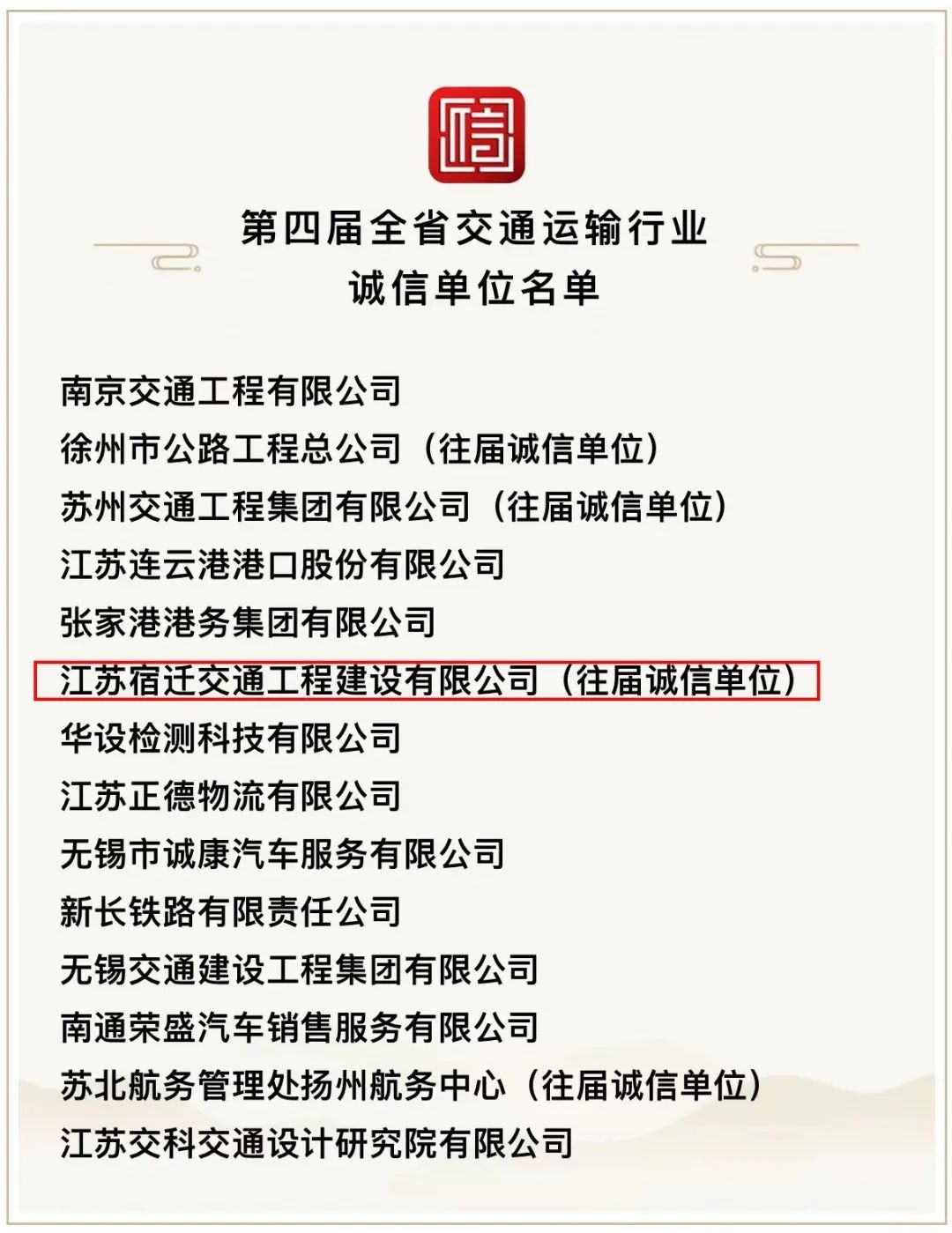 【宿遷交建】再獲第四屆全省交通運(yùn)輸行業(yè)誠信單位