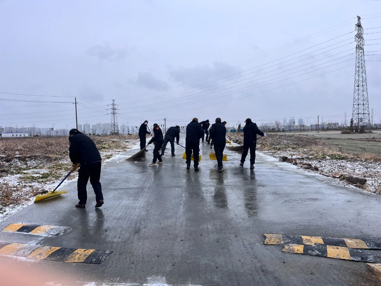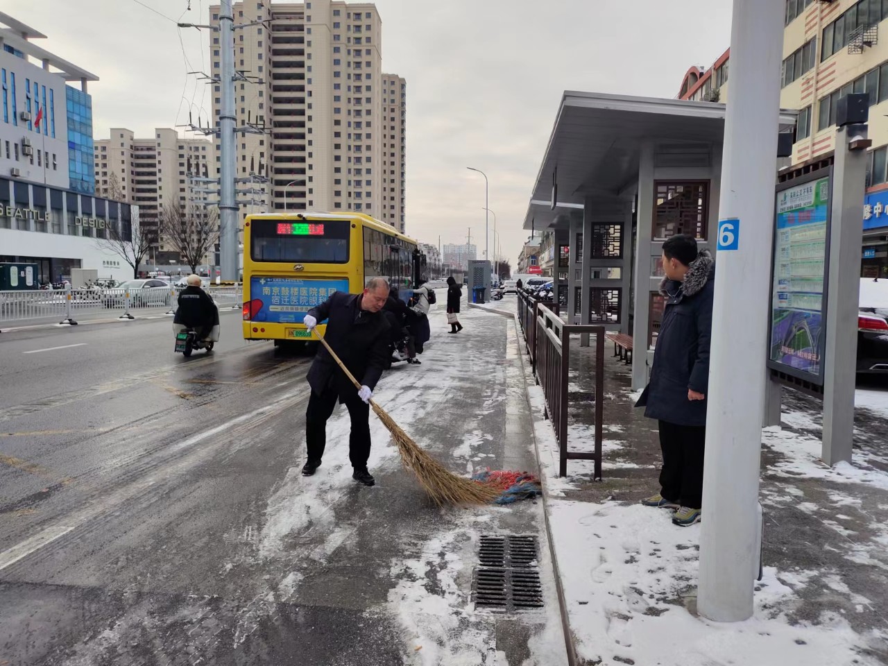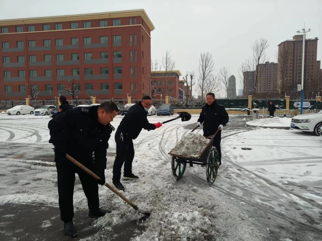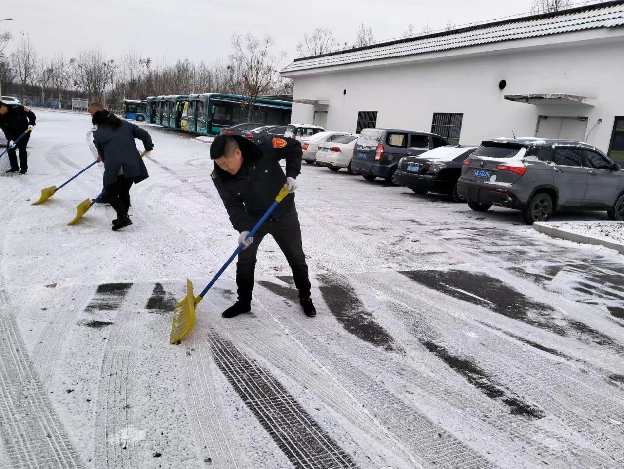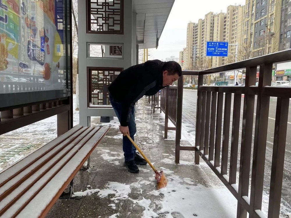 職工掃雪除冰、熱火朝天