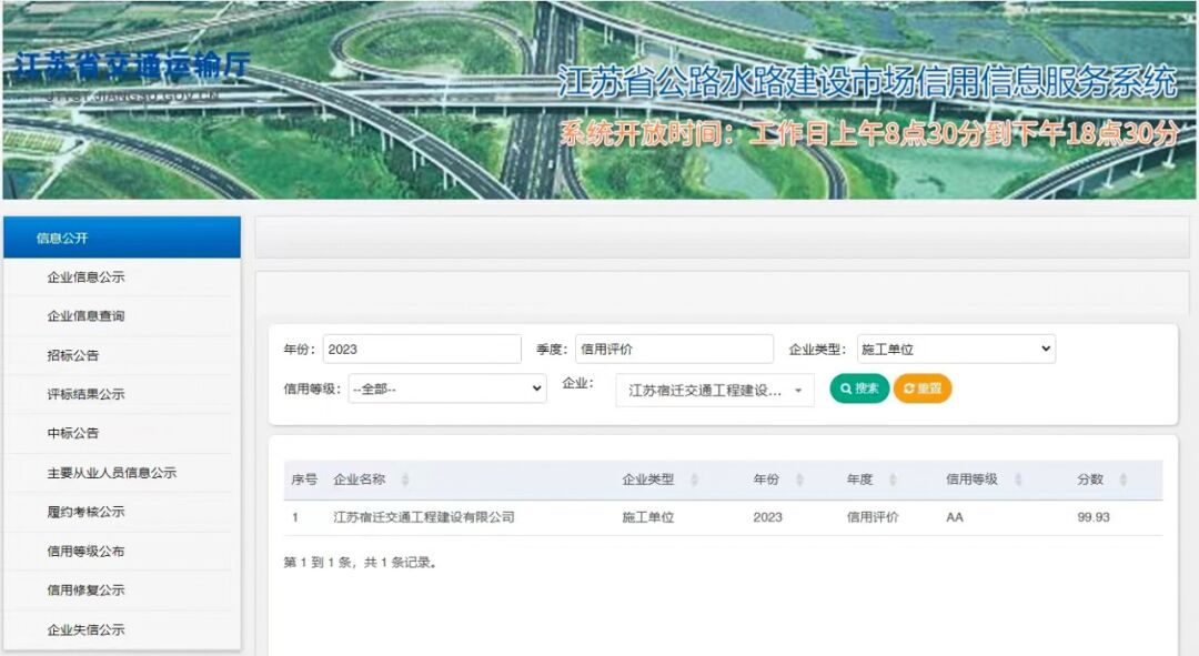 【宿遷交建】連續(xù)4年!宿遷交建再獲評(píng)江蘇省公路水運(yùn)建設(shè)市場(chǎng)從業(yè)單位信用評(píng)定AA級(jí)