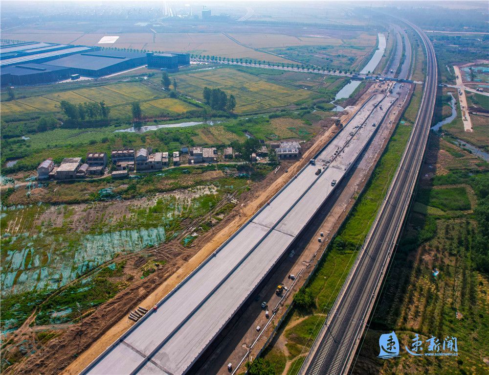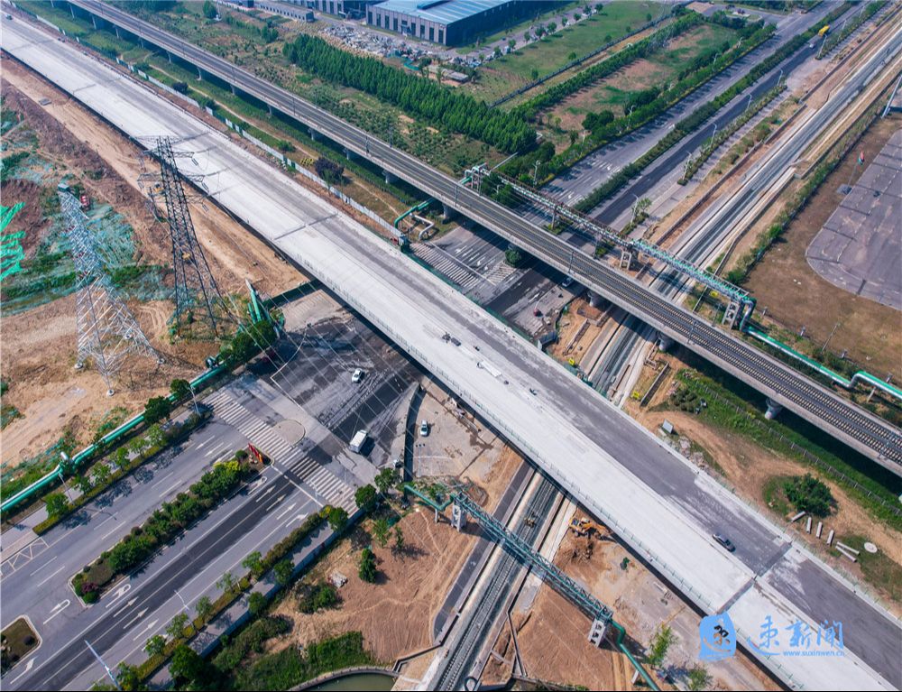 據了解,該項目于2023年7月開工,起點位于港城路與康程路交叉口東側,沿港城路向東上跨運河宿遷港鐵路專用線和云帆大道后接地,終點至港城路與中順路交叉口,全長1.36公里。截至目前,該工程總體進度已完成88%,預計6月底完成全部建設任務。