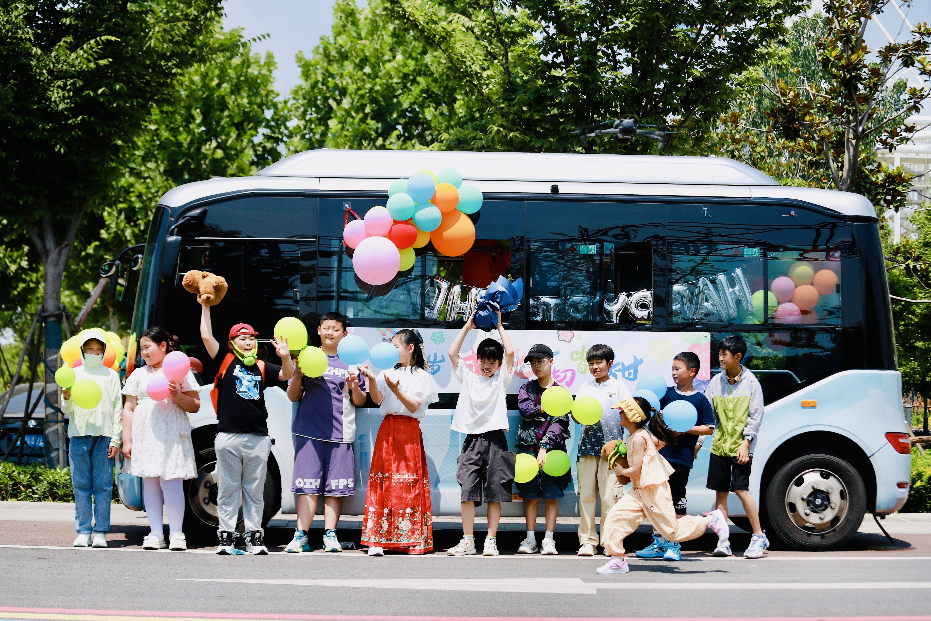 當(dāng)天上午,過生日的悠悠滿懷期待地和朋友們登上了“酒都小巴”,車身內(nèi)外彩色爛漫的氣球,精心準(zhǔn)備的生日祝福語裝點(diǎn)著這輛車牌號(hào)為“520”的公交車,孩子們都興奮的手舞足蹈,一路拍照合影,留下了美好的回憶。