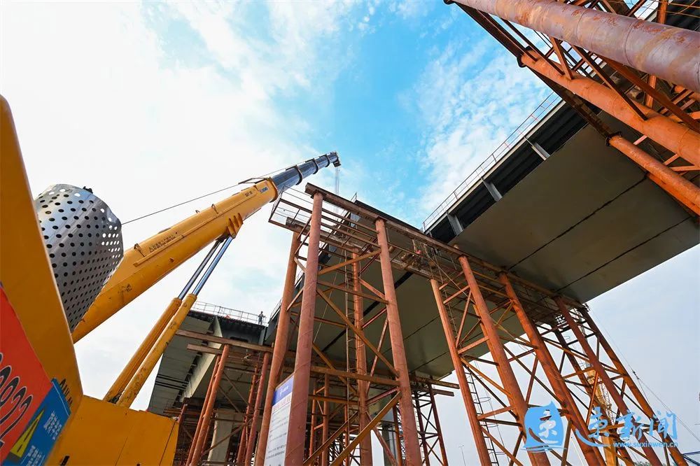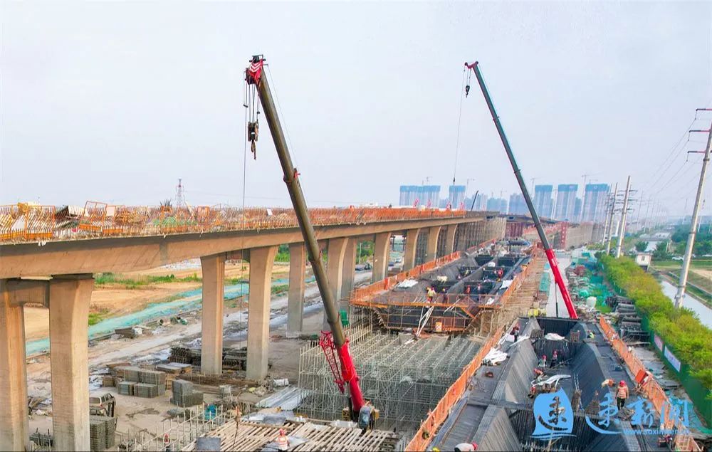 6月14日,在宿遷市酒都路快速化改造工程現(xiàn)場,建設(shè)者加緊施工作業(yè),全力推進項目建設(shè)進度。