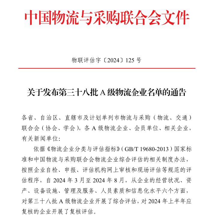 近日,中國(guó)物流與采購(gòu)聯(lián)合會(huì)發(fā)布了全國(guó)第三十八批A級(jí)物流企業(yè)名單,通湖物流園憑借優(yōu)異的綜合實(shí)力和服務(wù)水平,成功在兩年的時(shí)間里從全國(guó)3A級(jí)物流企業(yè)躋身全國(guó)4A級(jí)物流企業(yè)的行列,也是該批次宿遷市唯一一家獲得該項(xiàng)資質(zhì)認(rèn)定的物流企業(yè)。