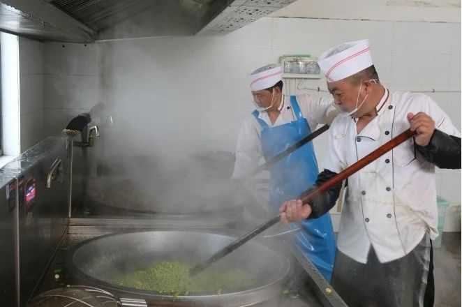 廚房間工作人員精心選購新鮮食材、認真清潔餐具。廚師們揮舞著鏟勺,烹飪出一道道營養(yǎng)豐富的菜肴。他們用美味的飯菜和貼心的服務,為堅守的公交人提供有力的后勤保障。