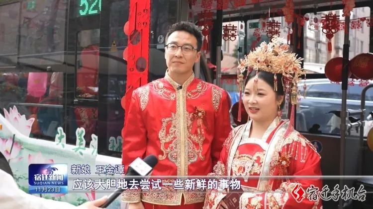 新娘王金譚說(shuō):“一起在公交車(chē)上更有團(tuán)聚的時(shí)間,互動(dòng)的時(shí)間也比較多,應(yīng)該大膽地去嘗試一些新鮮的事物,接受度比較高一點(diǎn),這個(gè)方式確實(shí)是挺吸引人的。”