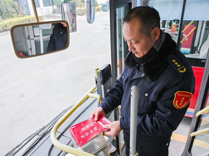 1月24日,宿遷市公交車駕駛員手拿免費乘車投幣箱封口貼封閉投幣箱。為了滿足春節(jié)期間市民和游客的出行需求,營造溫馨便捷氛圍,鼓勵和倡導(dǎo)市民綠色出行,宿遷市所有城市公交、城鄉(xiāng)公交、鎮(zhèn)村公交于1月25日至2月4日期間免費乘坐。