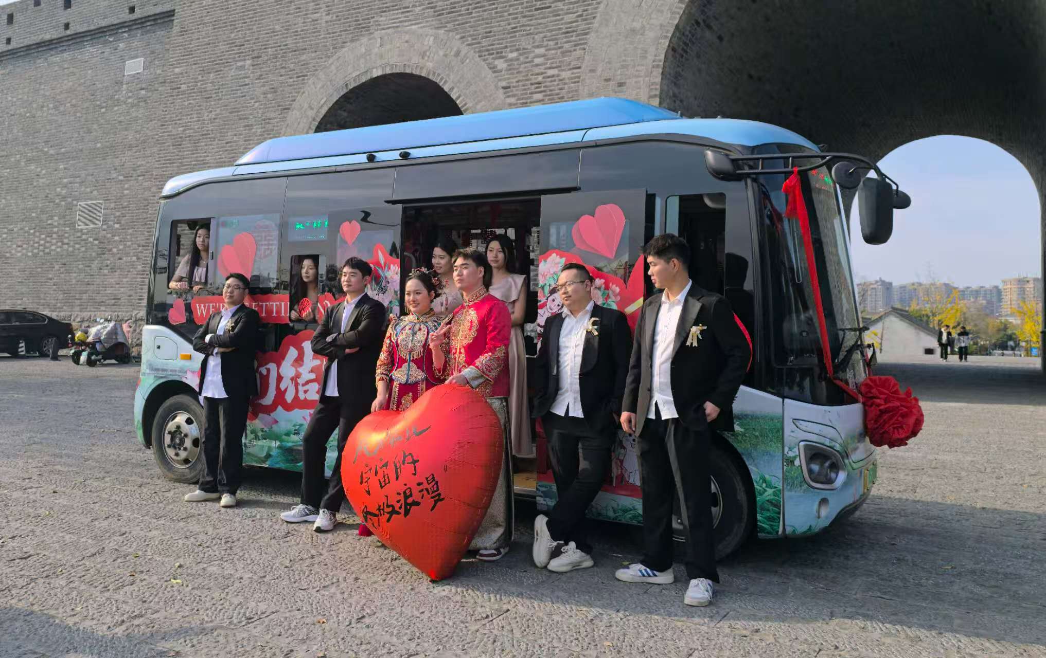 公交婚車的走俏,離不開背后完善的服務(wù)支撐與精準(zhǔn)的政策引導(dǎo)。為滿足新人的個(gè)性化需求,公交公司專門推出定制服務(wù):新人可根據(jù)賓客數(shù)量靈活選擇“酒都小巴”或公交大巴,還能自主設(shè)計(jì)車內(nèi)裝飾、規(guī)劃專屬接親路線,串聯(lián)起城市里的愛情地標(biāo),打造獨(dú)屬于自己的婚禮記憶。公司相關(guān)負(fù)責(zé)人表示:“今年,已有近50對新人選用新能源公交車作為婚車,公交婚車已然成為宿遷年輕人的婚嫁新時(shí)尚。”這股文明新風(fēng)尚,正持續(xù)升溫。