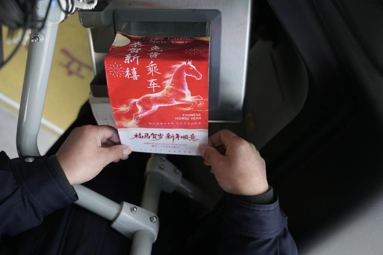 2月13日上午7時(shí),公交公司駕駛員手拿免費(fèi)乘車投幣箱封口貼封閉投幣箱。據(jù)悉,2026年春節(jié)期間,公交公司繼續(xù)實(shí)施免費(fèi)乘坐公交優(yōu)惠政策,自2月13日(農(nóng)歷臘月二十六)至2月23日(農(nóng)歷正月初七),共11天,乘客無需刷卡、掃碼或投幣支付,即可乘車。