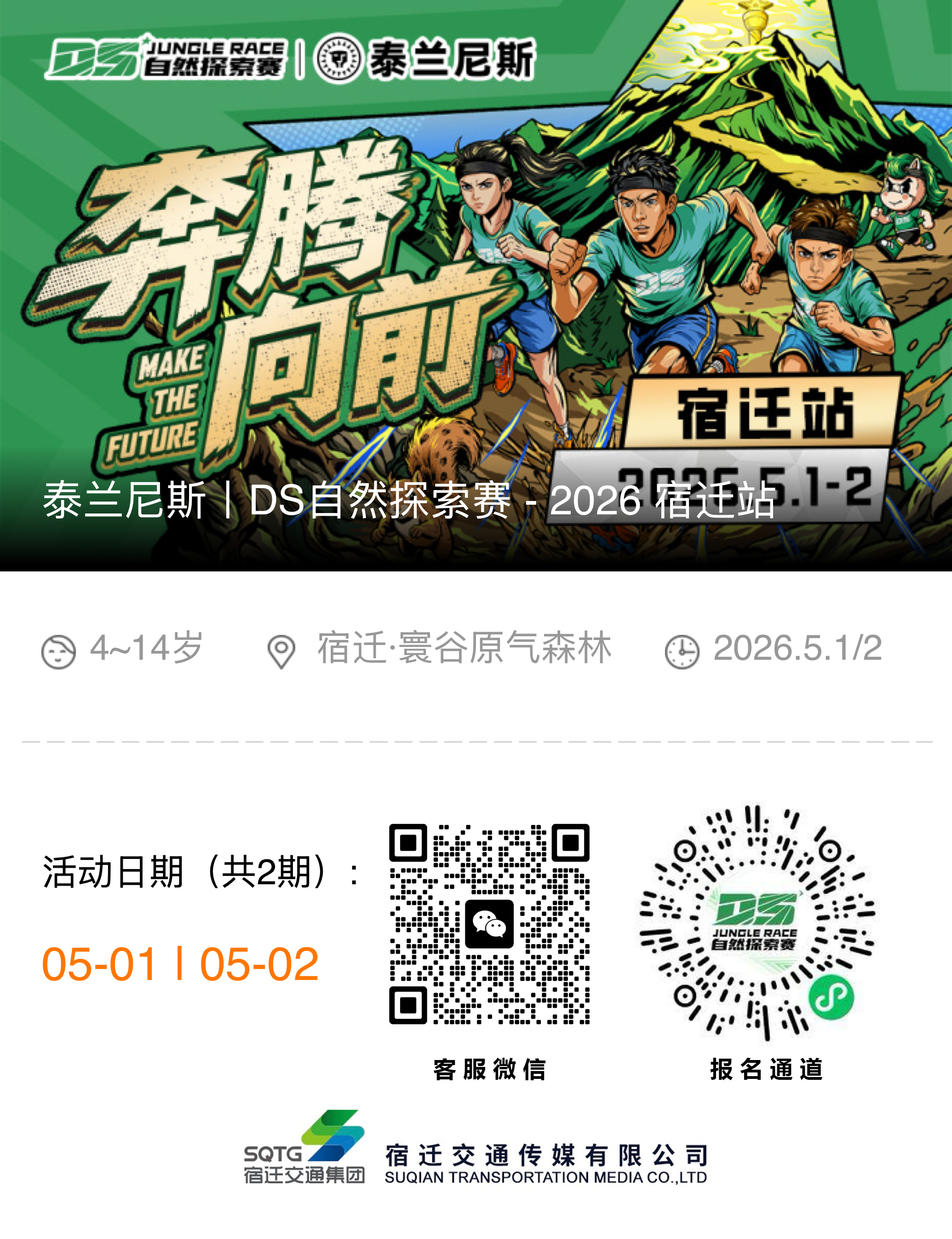 【交通傳媒】【傾情贊助】泰蘭尼斯-DS自然探索賽宿遷站報名開啟,等你來戰(zhàn)!