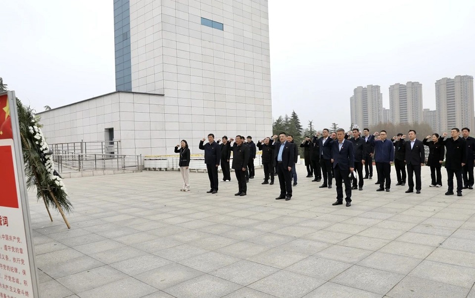 下午2時30分,雪楓公園廣場上莊嚴肅穆,彭雪楓將軍銅像栩栩如生。參加活動的全體人員列隊整齊,向彭雪楓將軍銅像敬獻花籃、鞠躬默哀,深切緬懷將軍的豐功偉績,表達哀悼和懷念之情。隨后,大家面向黨旗,緊握右手、高舉拳頭,重溫了入黨誓詞,堅定了“不忘初心、牢記使命”的信念和為全市發(fā)展大局貢獻力量的決心意志。