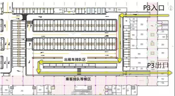 答:綜合客運樞紐設(shè)有出租車專用候車區(qū)位于P3停車庫E區(qū),入口和出口均設(shè)于站東路。出租車在候車區(qū)排隊有序接客后駛離。