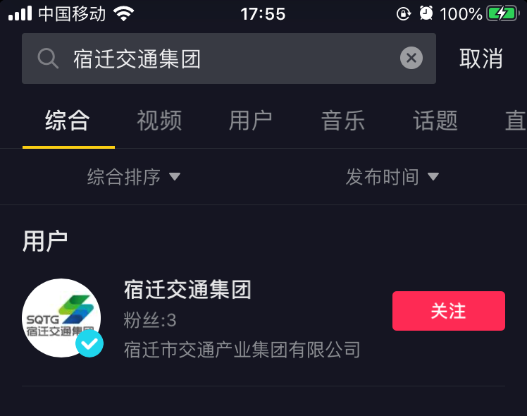 打開抖音APP,搜索“宿遷交通集團(tuán)”