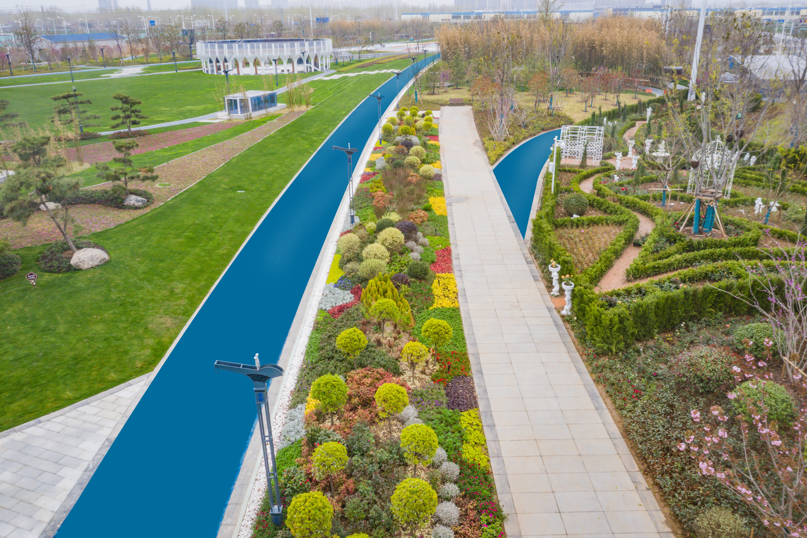 在酒都廣場有一條長1369米的“夢之藍(lán)”色瀝青道路。為了避免瀝青變色,工程項目部與南京工業(yè)大學(xué)等多家高校和企業(yè)合作,經(jīng)過近3個月的試驗、觀察,最終成功研制出顏色、性能均滿足要求的混合料。這是無變色期的“夢之藍(lán)”色瀝青混合料在國內(nèi)的首次使用,體現(xiàn)了“中國酒都”的設(shè)計主題,呈現(xiàn)出賞心悅目的景觀效果,目前正在申報國家級工法。